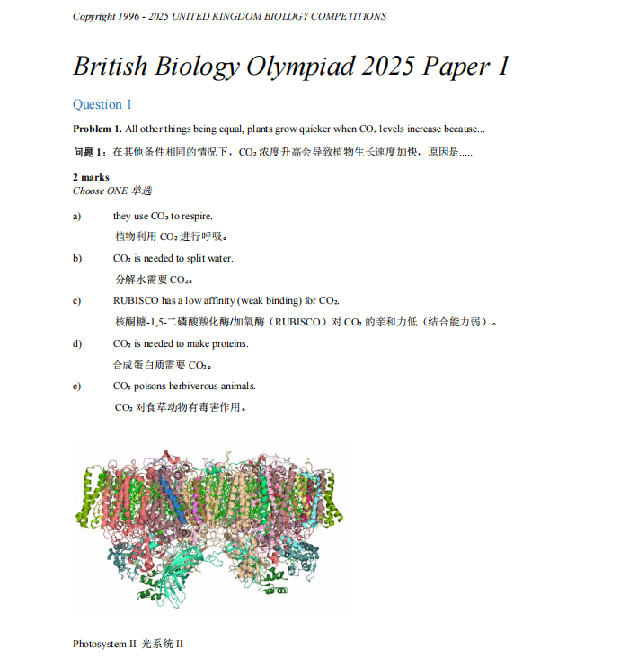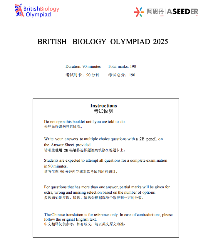 BBO由英国皇家生物学会(RSB)主办,是全球高中生申请牛津、剑桥、帝国理工等G5名校生物/医学类专业的重要学术凭证。尽管其内容以A-Level生物为基础,但题量巨大、时间极紧、题型灵活、常涉超纲内容,对学生的知识广度、反应速度与英语科学素养提出极高要求。